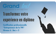 La couveuse Grand Test vous offre la possibilité d’obtenir une certification professionnelle « Entrepreneur de la TPE » de niveau Bac+3 et ainsi transformer votre expérience en diplôme.